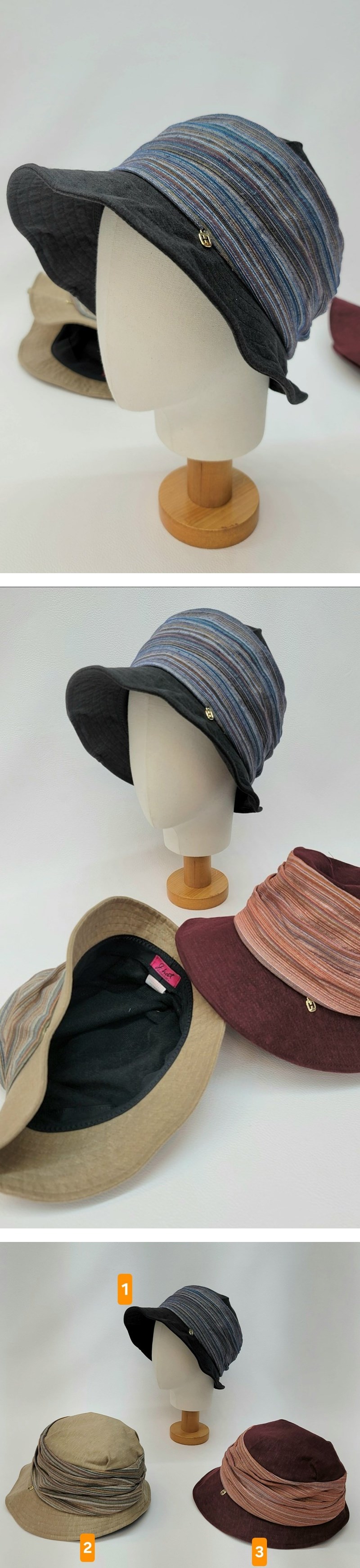 와이어 챙 배색 라인 벙거지 중년 여성 모자