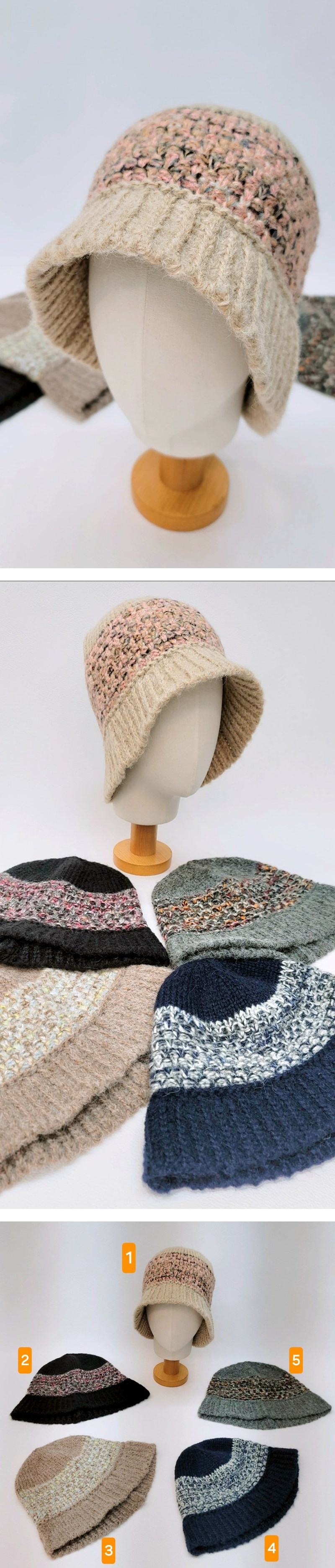 골지 니트 배색 라인 벙거지 여성 겨울 모자