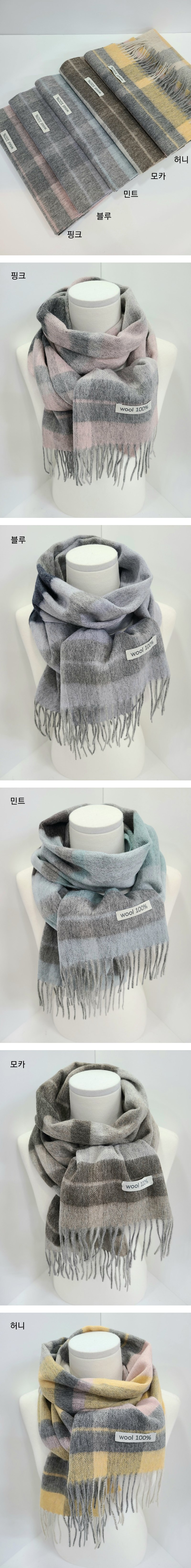 울 100 파스텔 체크 여성 남성 롱 머플러색상:핑크,블루,민트,모카,허니사이즈 : 0cm소재 : 울100%, 실측사이즈: 30x180cm