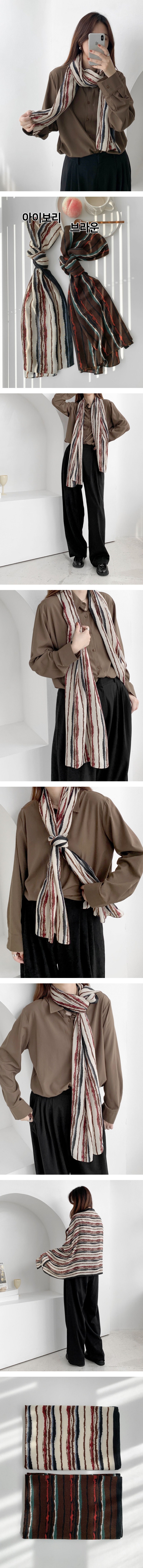 배색 라인 직사각 롱 스카프 중년 여성 머플러