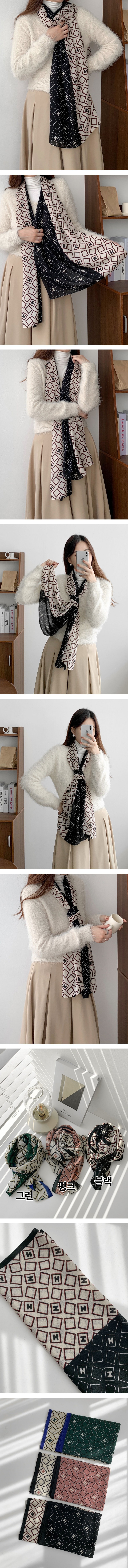 H 큐브 배색 중년 여성 겨울 롱 스카프 머플러색상:그린,핑크,블랙사이즈 : 0cm소재 : 폴리100%, 실측사이즈: 68x180cm