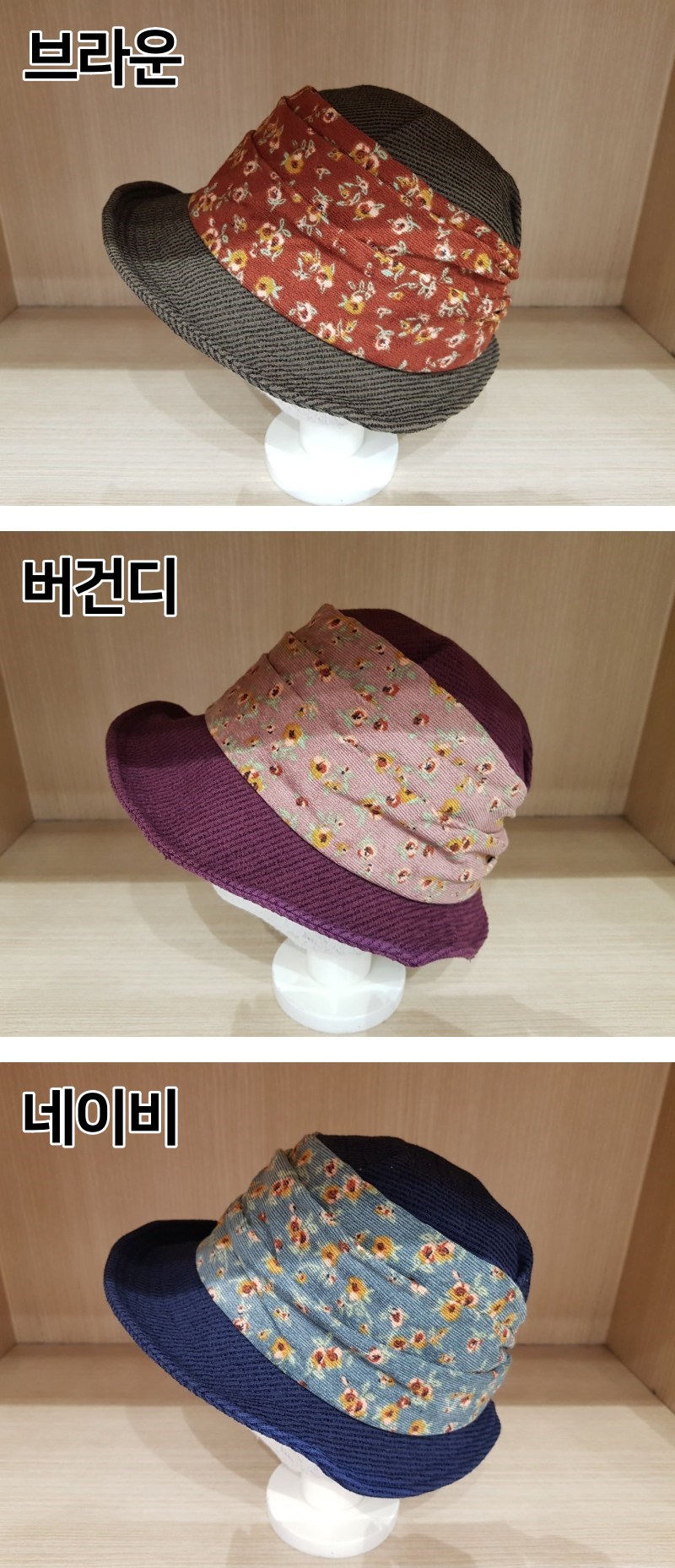 꽃 라인 골덴 벙거지 중년 여성 겨울 모자색상:브라운,버건디,네이비사이즈 : 0cm소재 : 아크릴,폴리