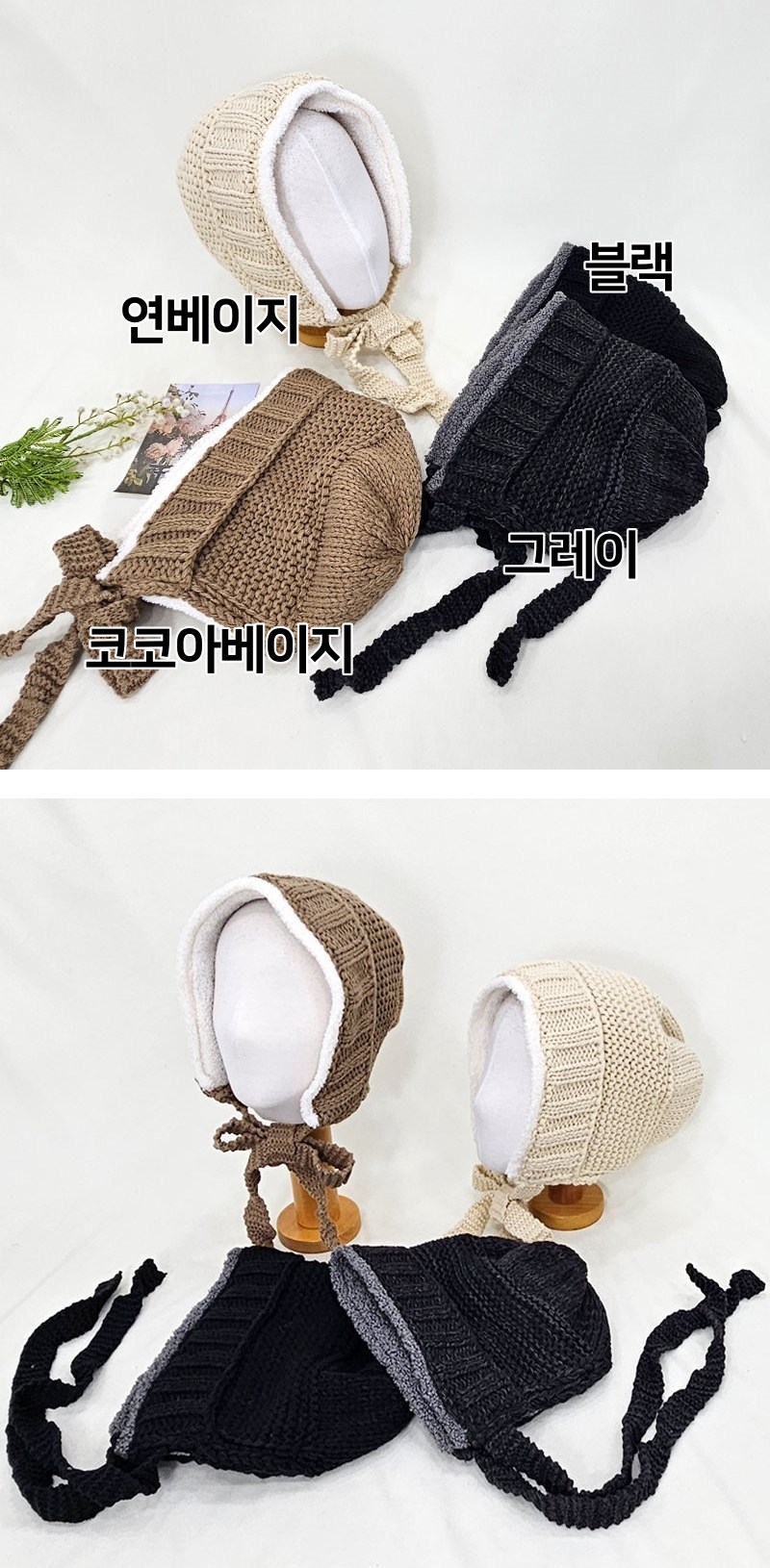 니트 턱 끈 귀도리 비니 겨울 보넷 방한 모자색상:연베이지,그레이,코코아베이지,블랙사이즈 : 0cm소재 :
