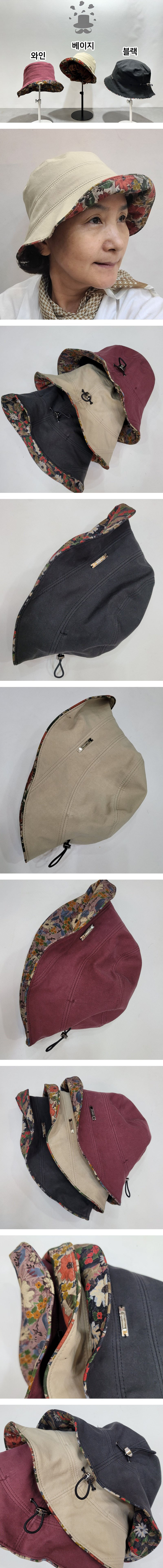 꽃 배색 스트링 벙거지 모자 여성 버킷햇
