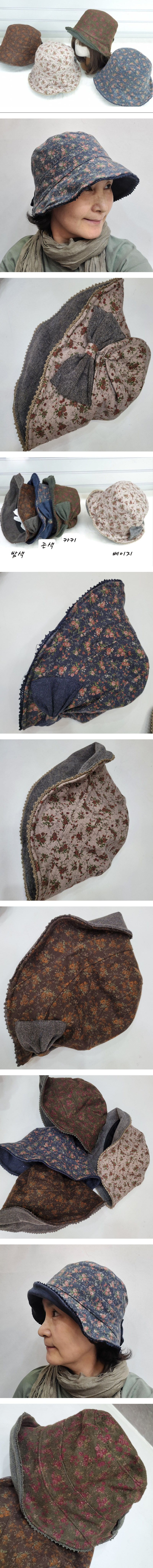꽃 패턴 왕 리본 벙거지 모자 여성 버킷햇색상:블루,베이지,브라운,카키사이즈 : 0cm소재 :