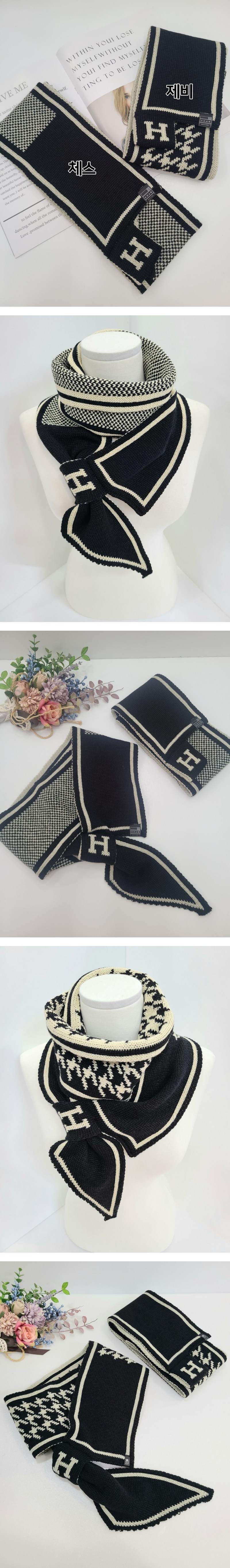 애슬릿 패턴 H 고리 니트 머플러 여성 남자 목도리