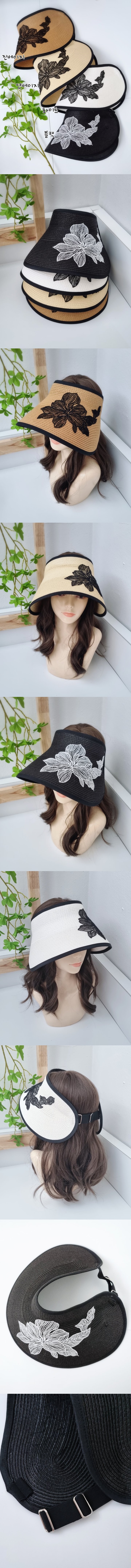 여성 꽃 자수 챙 넓은 휴양지 비치 바캉스 모자색상 : 진베이지,연베이지,화이트,블랙사이즈 : 프리cm소재 :