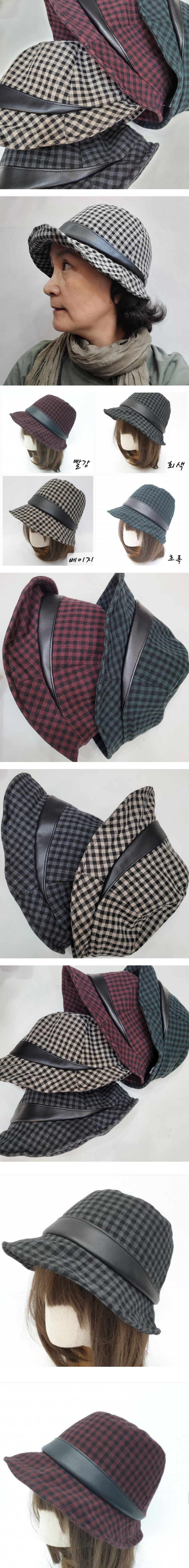 레더 라인 체크 벙거지 모자 여성 버킷햇색상:먹색,베이지,레드,그린사이즈 : 0cm소재 :