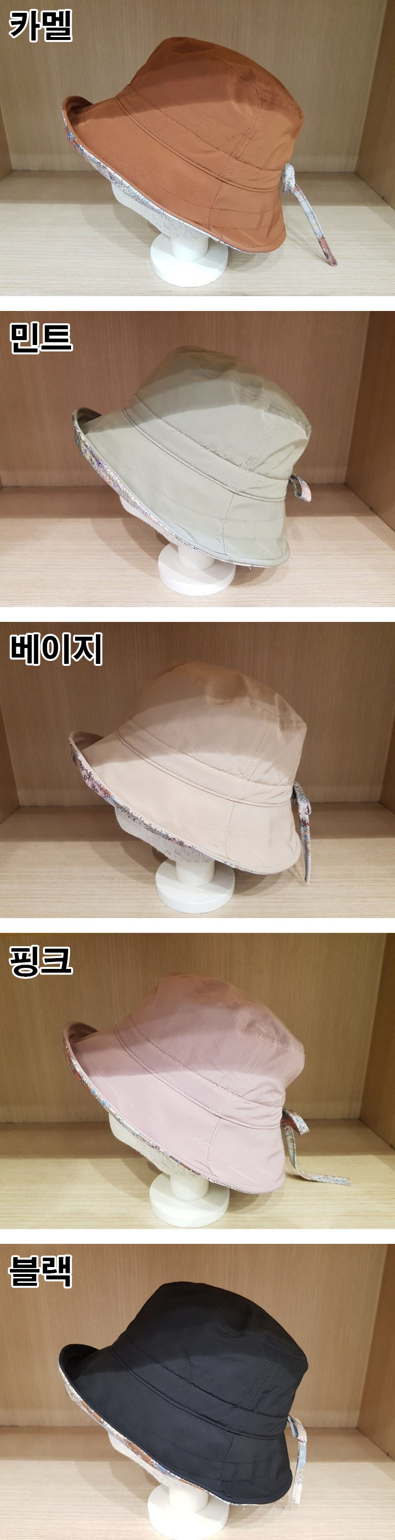 중년 여성 꽃 챙 스트랩 벙거지 모자 버킷햇색상:카멜,민트,베이지,핑크,블랙사이즈 : 0cm소재 : 아크릴,폴리
