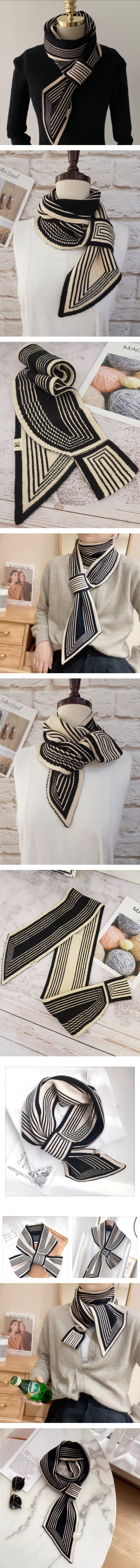 애슬릿 투톤 라인 사선 고리 니트 머플러 겨울목도리