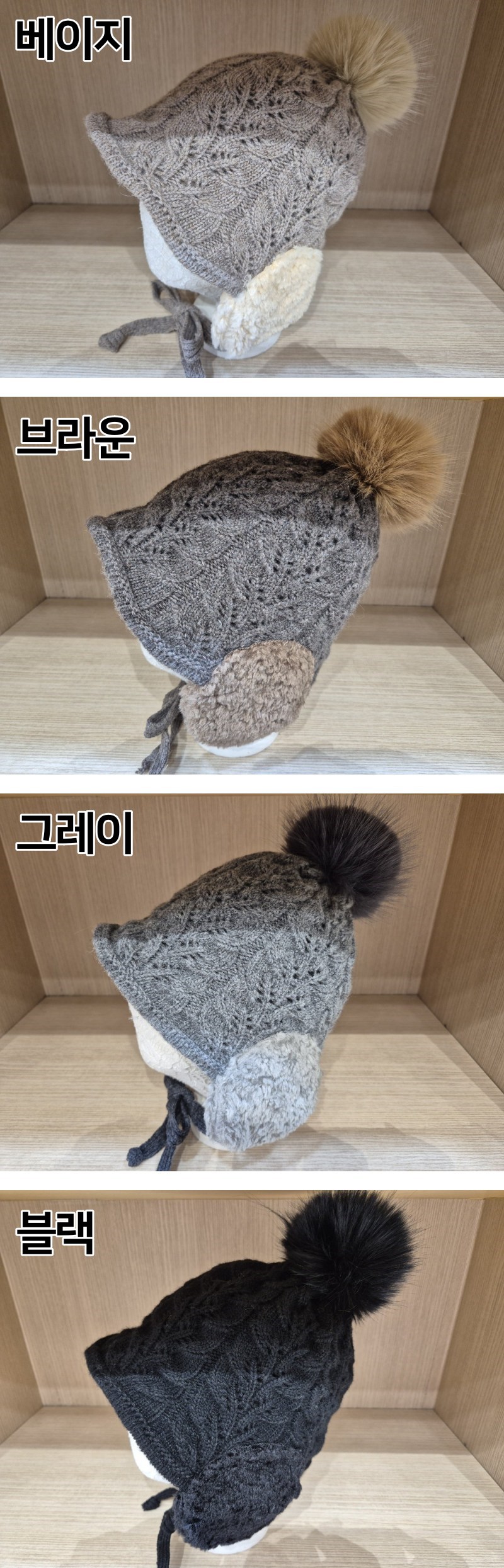 꽈배기 니트 벙거지 털 방울 귀달이 모자색상:베이지,브라운,그레이,블랙사이즈 : 0cm소재 : 울,폴리