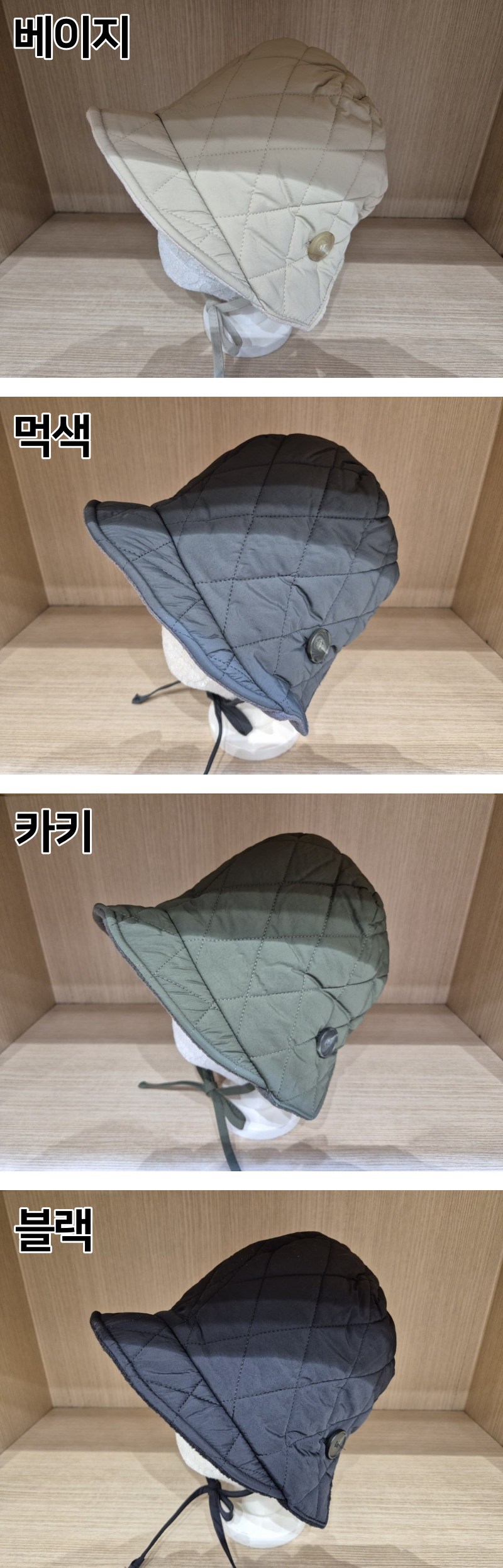 누빔 패딩 단추 턱 끈 벙거지 겨울 보넷 모자색상:베이지,먹색,카키,블랙사이즈 : 0cm소재 : 아크릴,폴리