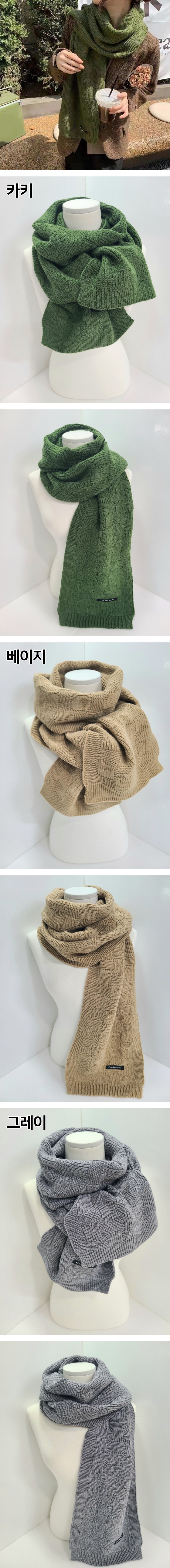 격자 패턴 무지 니트 머플러 커플 겨울목도리색상:카키,베이지,그레이사이즈 : 0cm소재 : 아크릴, 실측사이즈: 28x172cm