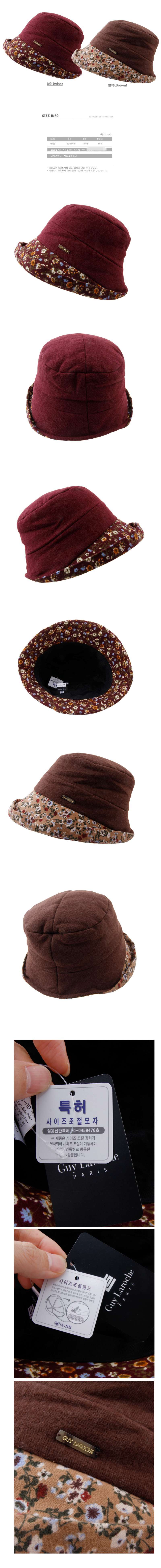버킷햇 중년 여성 면 가을 겨울 벙거지 모자 꽃 배색 숏색상 : 와인,밤색사이즈 : 56~58cm,창길이6cm소재 : 면72,레이온28*사이즈는 재는 방식에 따라 2~3cm내외의 오차가 있을수 있습니다.