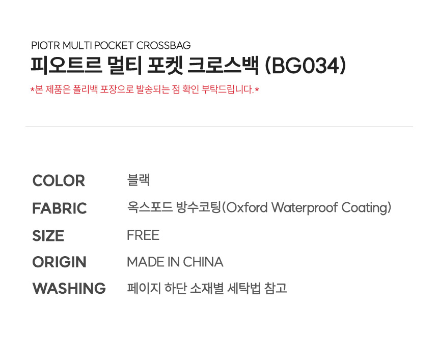 피오트르 멀티 포켓 크로스백 (BG034)