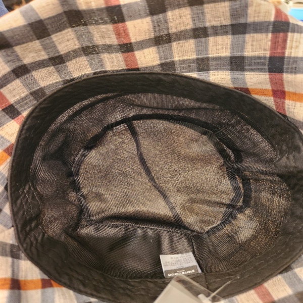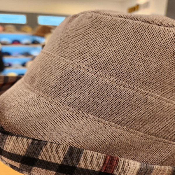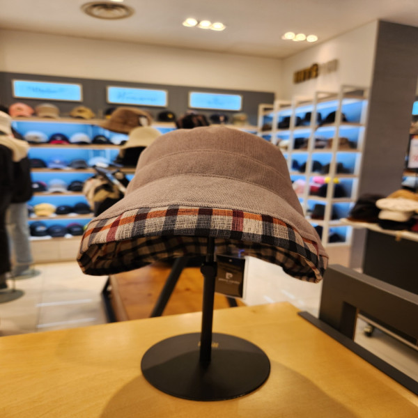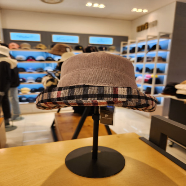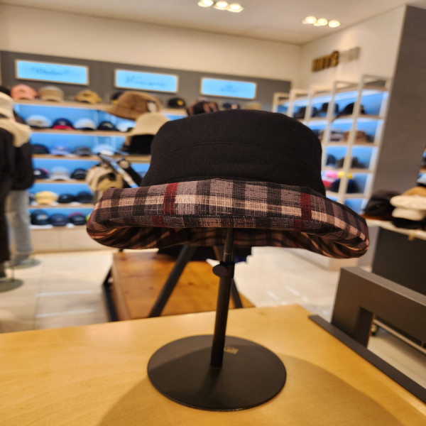 실용적인 아이템. 체크배색 챙을 펼쳐서 좀더 길게 연출도 가능함