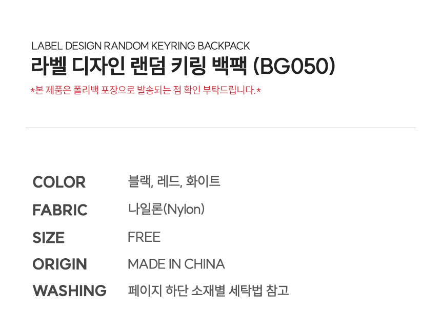 라벨 디자인 랜덤 키링 백팩 (BG050)