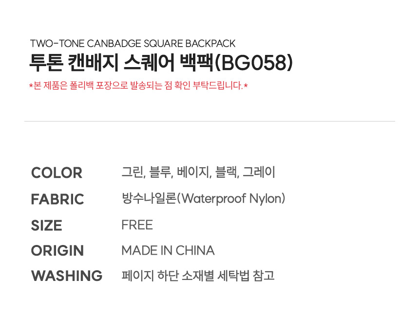 투톤 캔배지 스퀘어 백팩 (BG058)