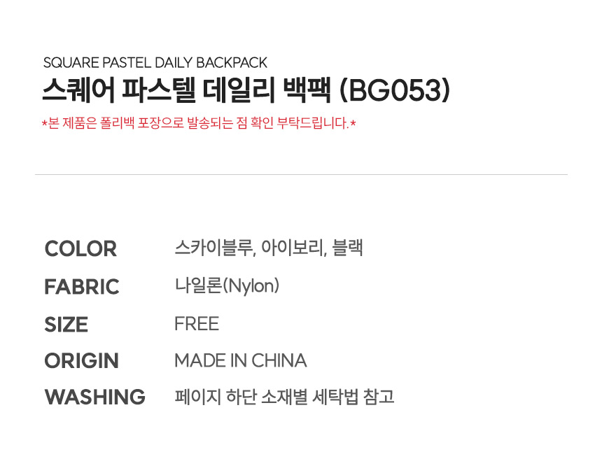 스퀘어 파스텔 데일리 백팩 (BG053)