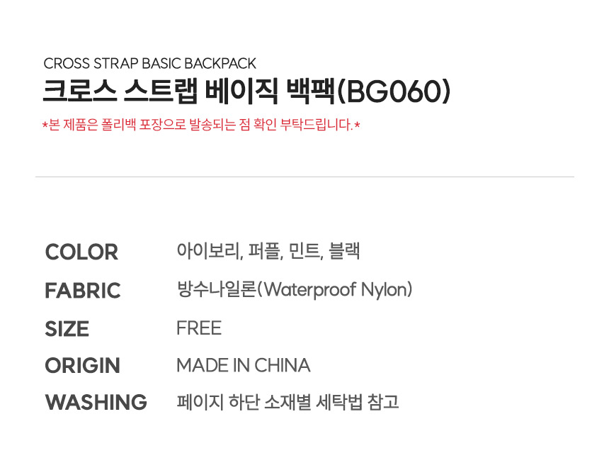 크로스 스트랩 베이직 백팩 (BG060)