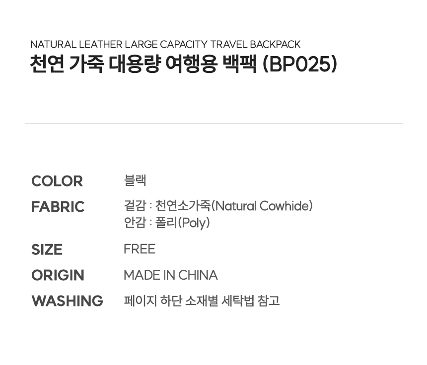 천연 가죽 대용량 여행용 백팩 (BP025)