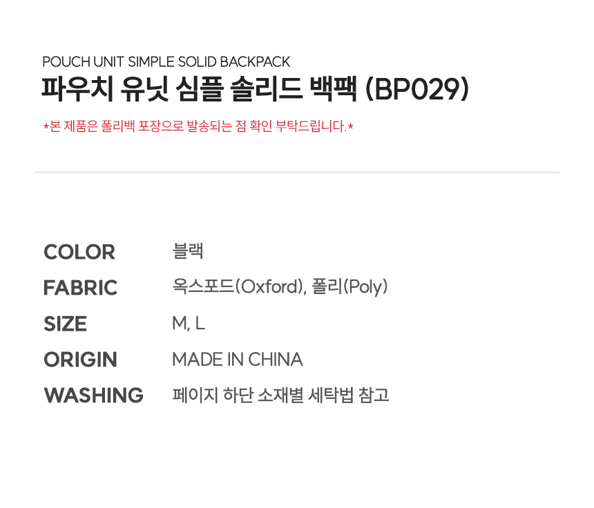 파우치 유닛 심플 솔리드 백팩 (BP029)