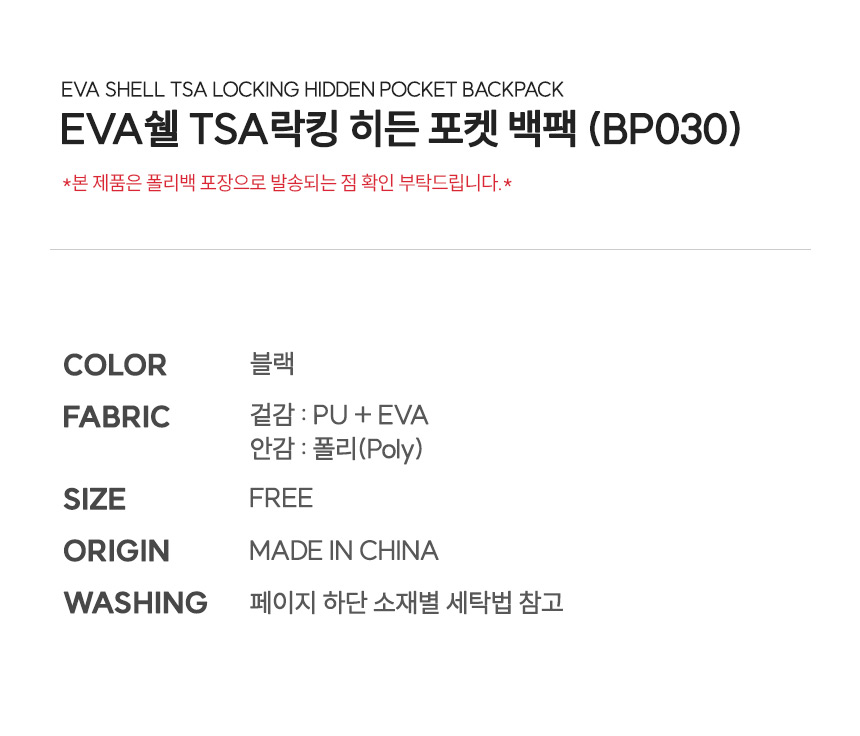 EVA쉘 TSA락킹 히든 포켓 백팩 (BP030)