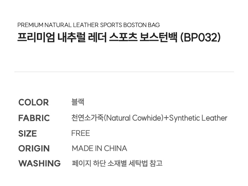프리미엄 내추럴 레더 스포츠 보스턴백 (BP032)