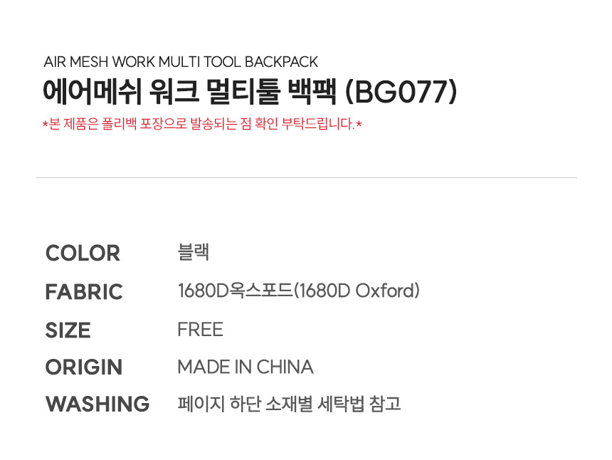 에어메쉬 워크 멀티툴 백팩 (BG077)
