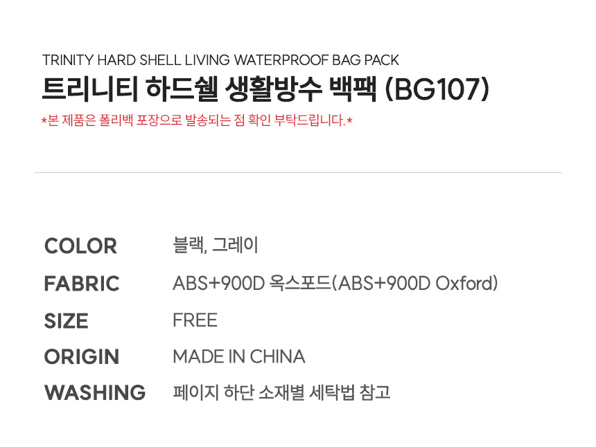 트리니티 하드쉘 생활방수 백팩 (BG107)