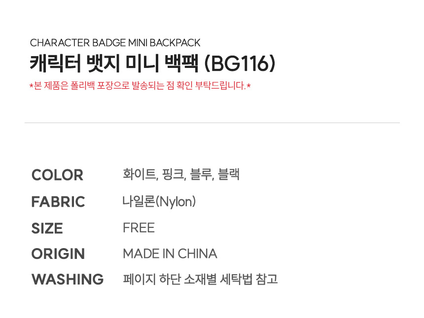 캐릭터 뱃지 미니 백팩 (BG116)