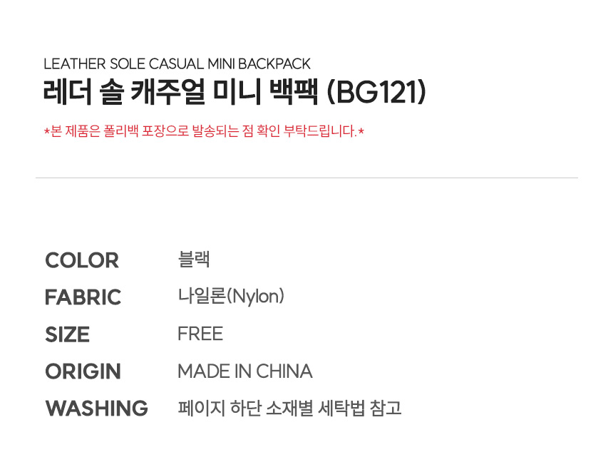 레더 솔 캐주얼 미니 백팩 (BG121)