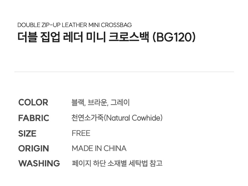 더블 집업 레더 미니 크로스백 (BG120)