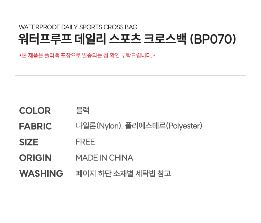 워터프루프 데일리 스포츠 크로스백 (BP070)