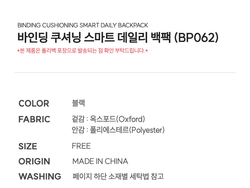 바인딩 쿠셔닝 스마트 데일리 백팩 (BP062)
