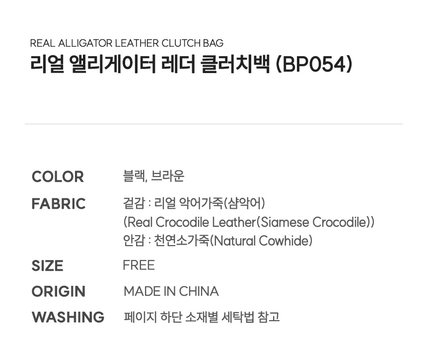 리얼 앨리게이터 레더 클러치백 (BP054)