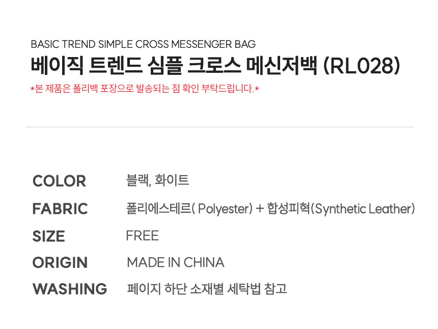 베이직 트렌드 심플 크로스 메신저백 (RL028)