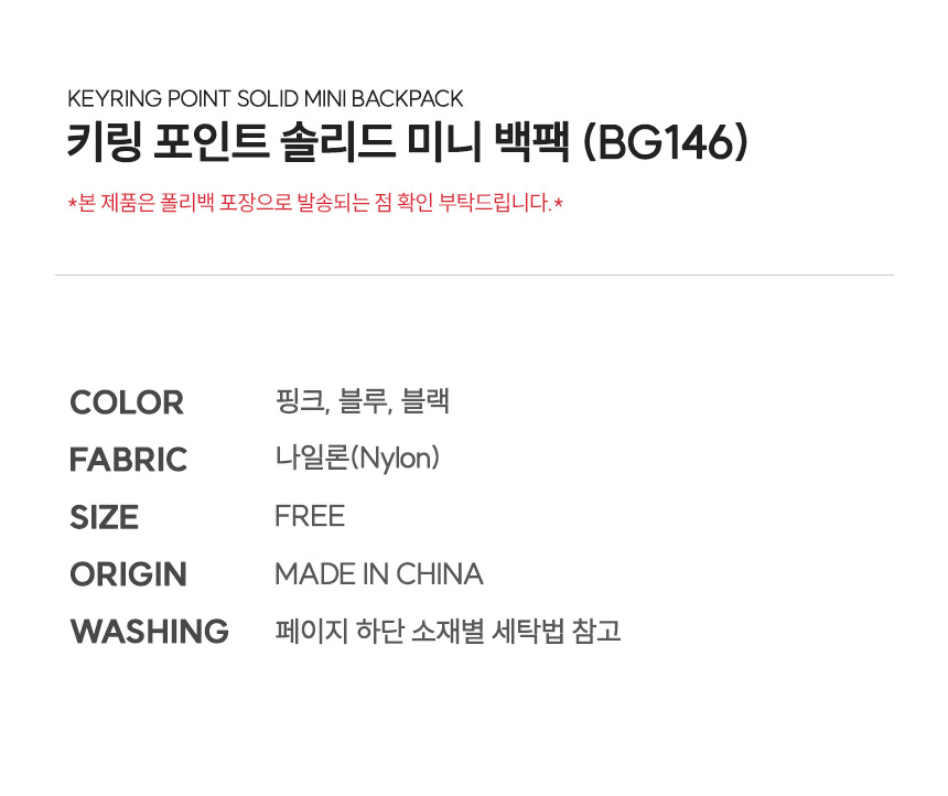 키링 포인트 솔리드 미니 백팩 (BG146)