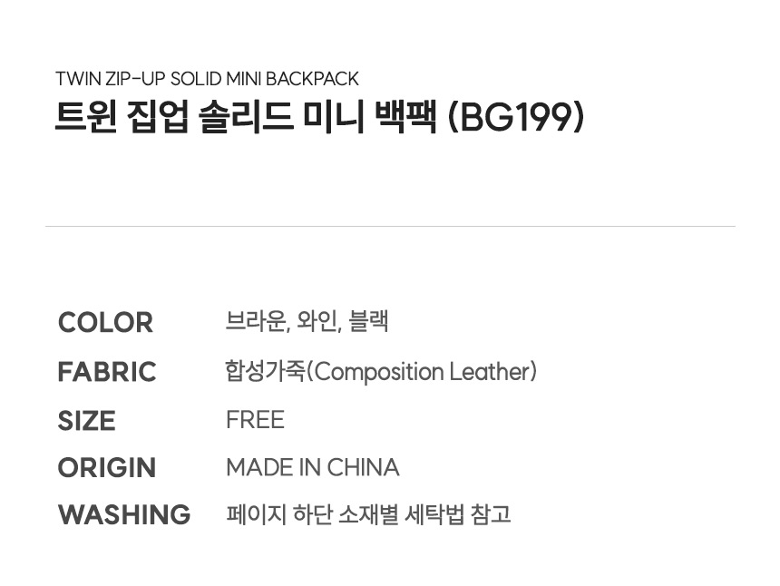 트윈 집업 솔리드 미니 백팩 (BG199)