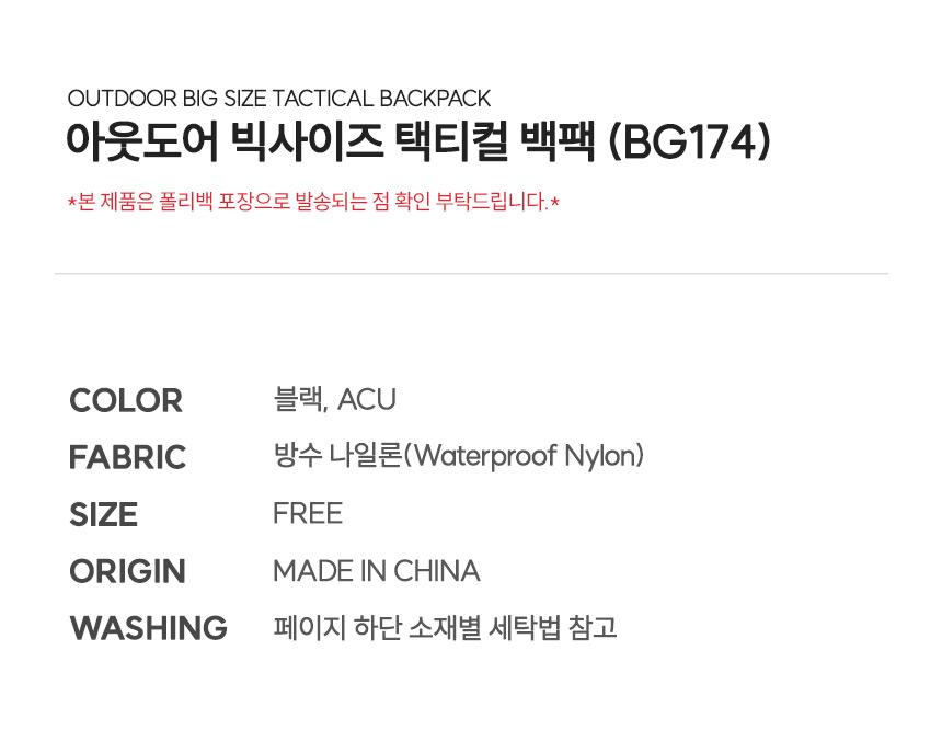 아웃도어 빅사이즈 택티컬 백팩 (BG174)