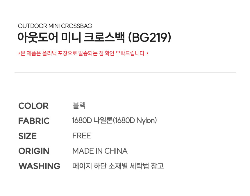 아웃도어 미니 크로스백 (BG219)