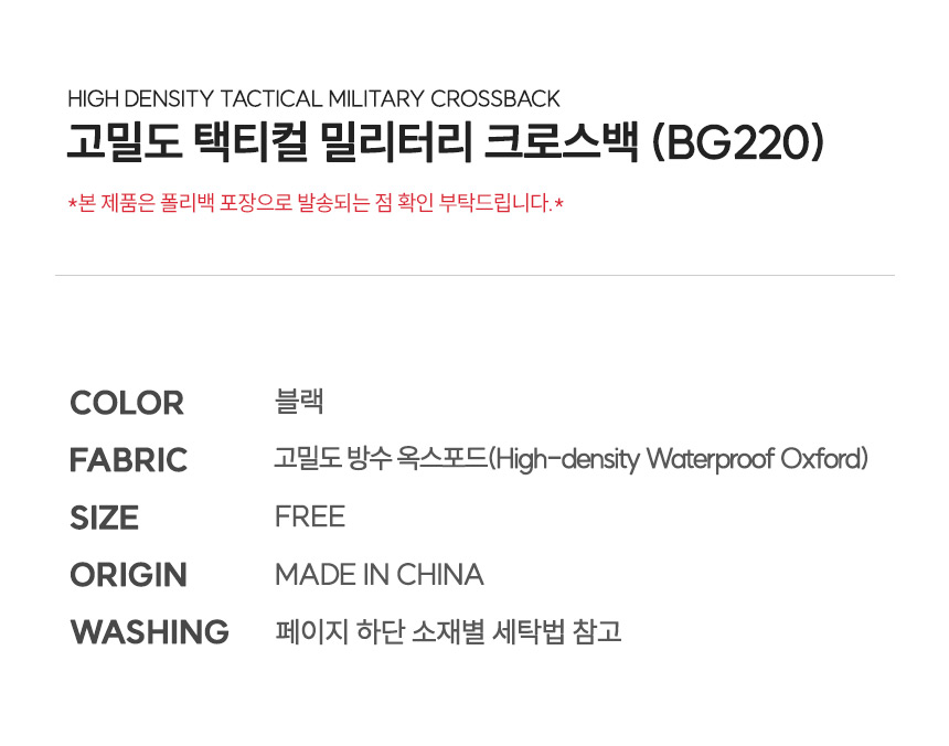 고밀도 택티컬 밀리터리 크로스백 (BG220)