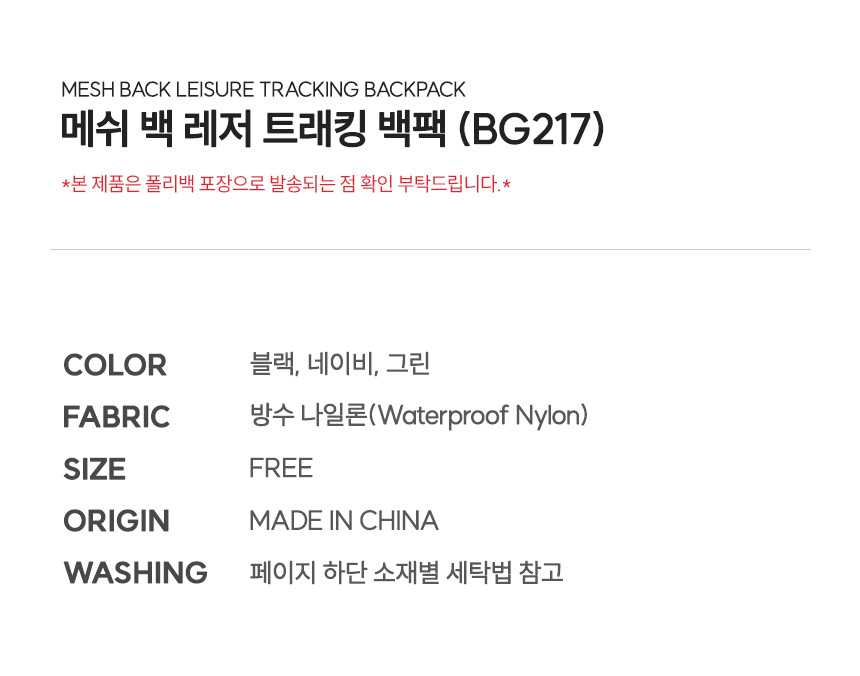 메쉬 백 레저 트래킹 백팩 (BG217)
