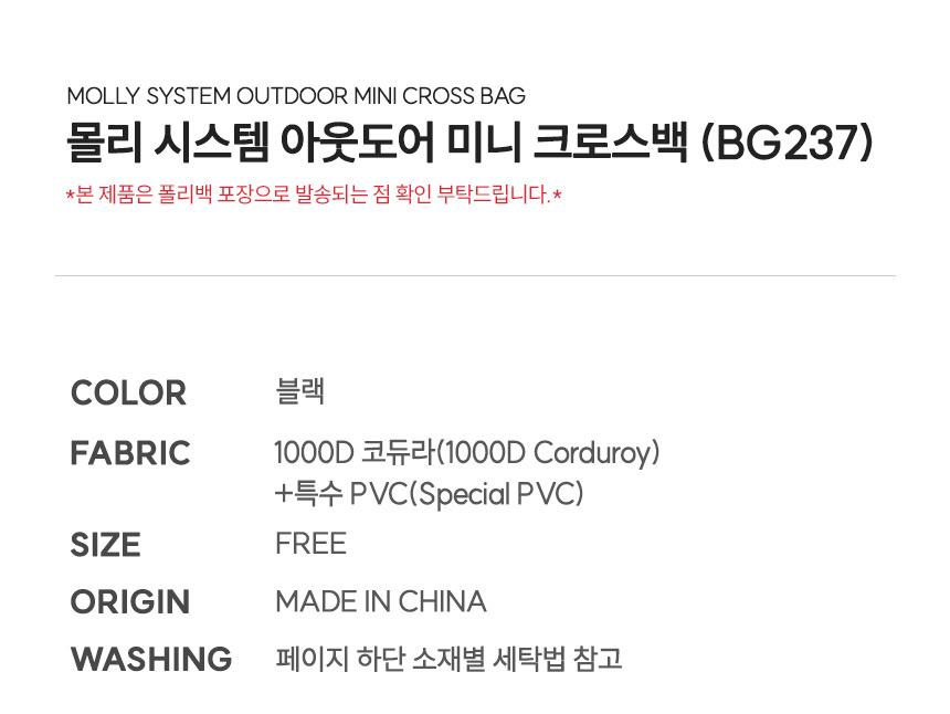 몰리 시스템 아웃도어 미니 크로스백 (BG237)