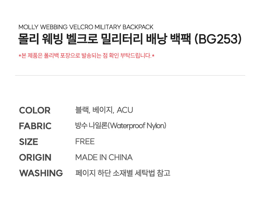 몰리 웨빙 벨크로 밀리터리 배낭 백팩 (BG253)