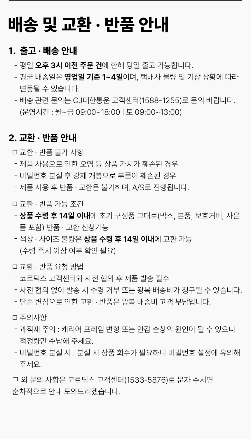 코르딕스 그랑 기내용 여행용 캐리어 24인치 하드