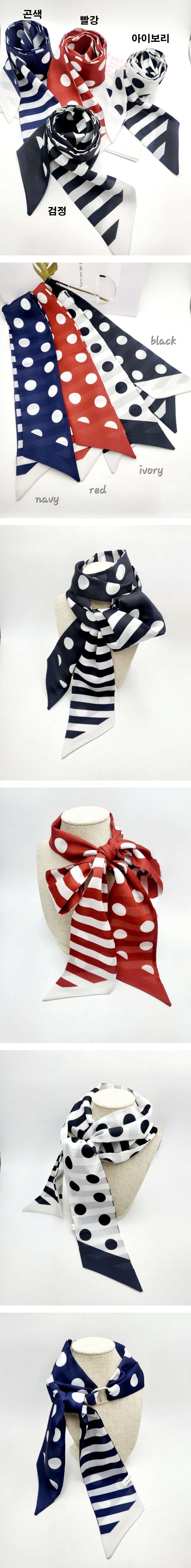 도트 스카프 여성 가을 방도 가방 롱 긴 타이 리본색상 : 곤색,빨강,아이보리,검정사이즈 : 136cm * 8cm소재 : 폴리100*사이즈는 재는 방식에 따라 2~3cm내외의 오차가 있을수 있습니다.