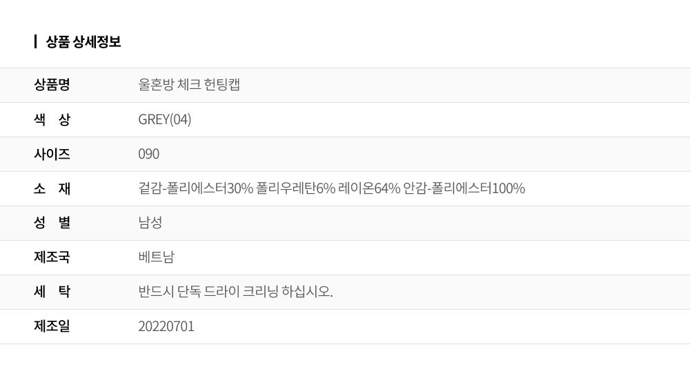 (현대Hmall)DUANI 울혼방 체크 헌팅캡_MEMXEYZ8351