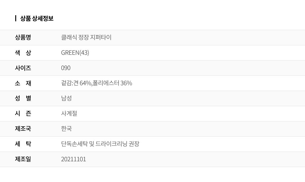 (현대Hmall)BRUNO BAFFI 클래식 정장 지퍼타이_MARSNYY1351