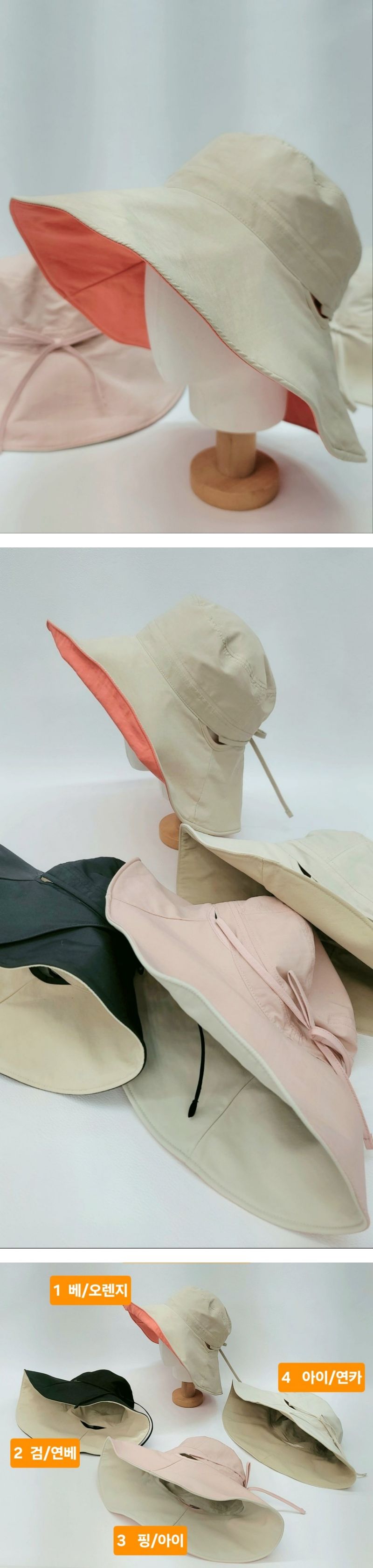 국산 무지 와이어 여름 얇은 버킷햇 모자색상 : 1,2,3,4사이즈 : 소재 : 폴리*사이즈는 재는 방식에 따라 2~3cm내외의 오차가 있을수 있습니다.